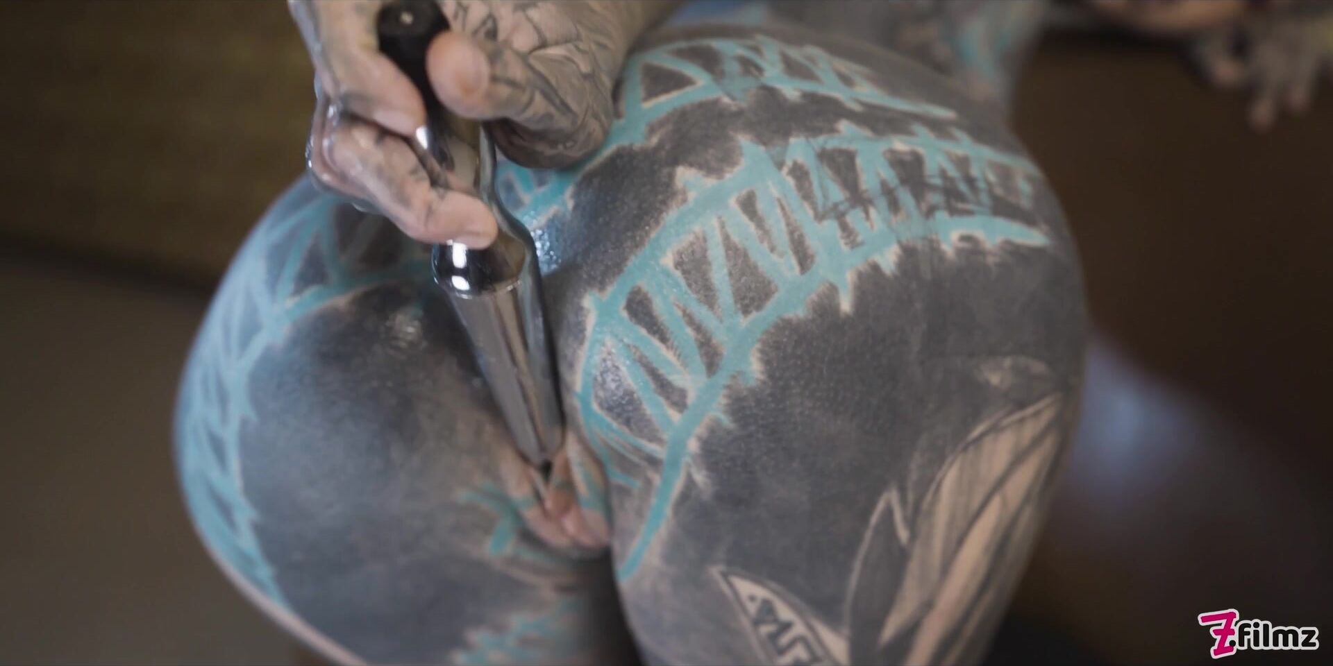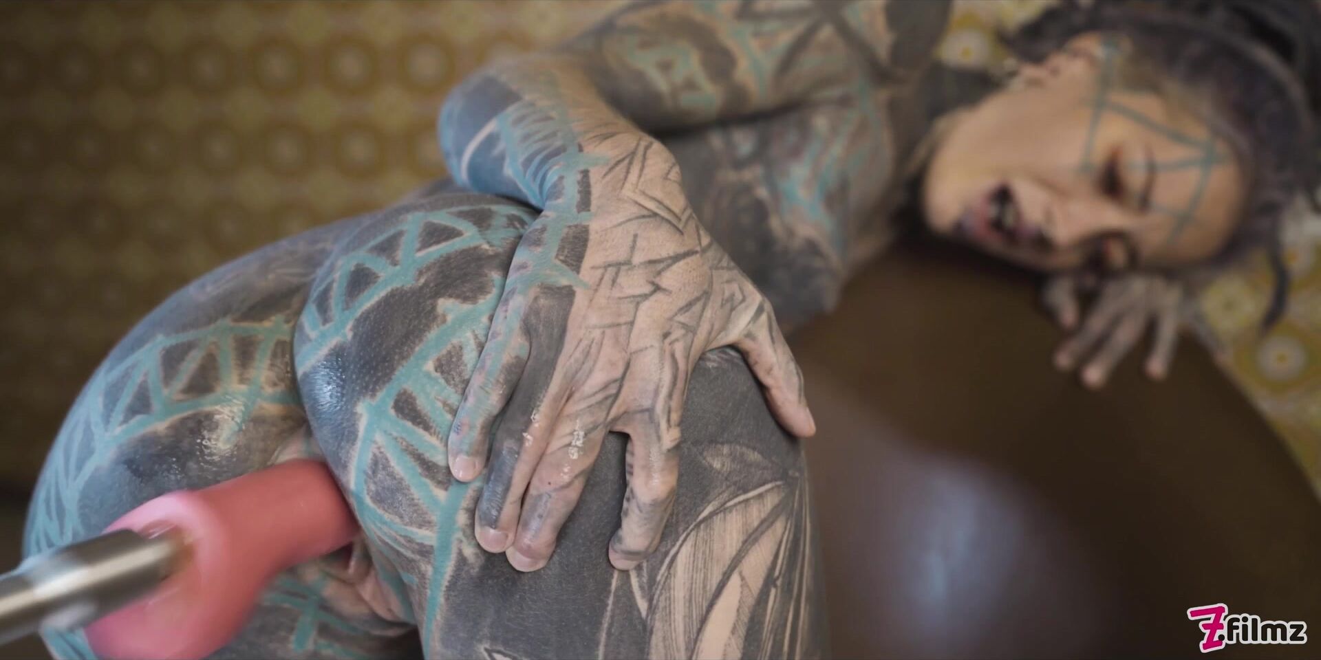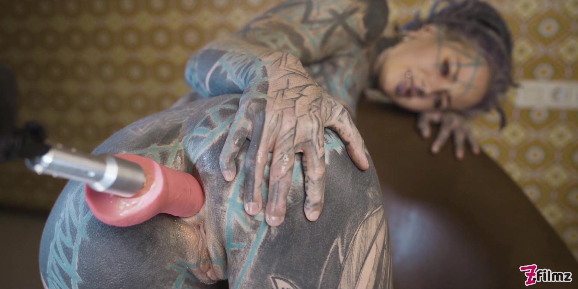 Tattooed Teen Testing Fuck Machine With Her Anal
