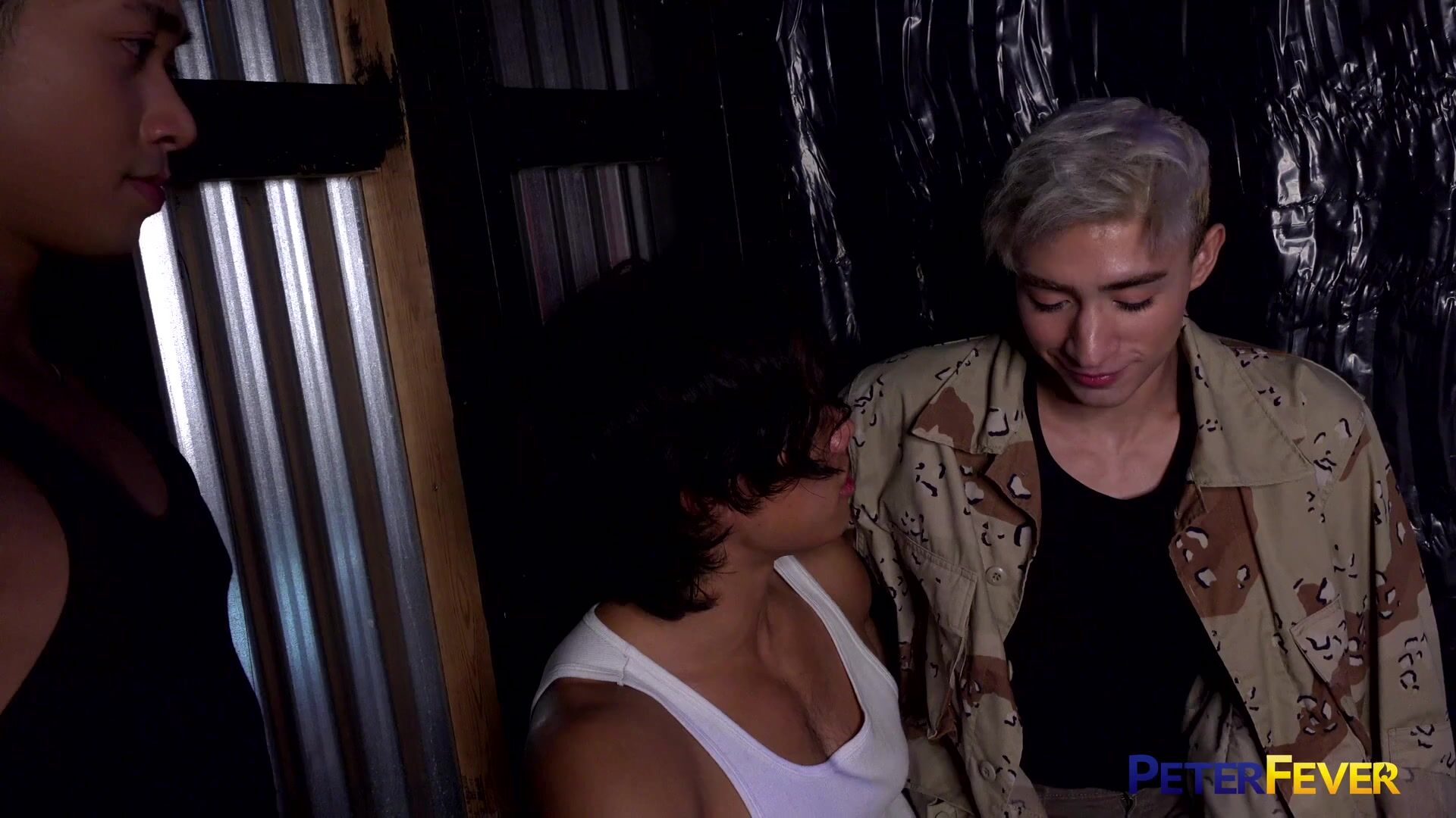 In the secret lair of the Metropolis Complex, the QBoys monitor the status of their base in Augusta. When Pierce Brooks spots an intruder on the base, blonde pup Ander Wolfson offers to come along to investigate, but hot and hot-tempered Commander Jay Wu has other plans for his best boy. Pierce comes upon the handsome, hung intruder, Tony Genius, taking a piss off the bridge into the meandering creek below. "Nice dick!" he remarks, and before you know it, the intruder is abandoning all his natural wariness to have it off with the beautiful Asian studmuffin. They kiss, Pierce takes a deep swallow of Tony's massive cock, and Tony spins him around to tongue fuck Pierce's tight little booty. When he stands he can't help sliding his big manrammer into Pierce's butt. Bracing against the bridge rail, Pierce bites his lip and backs into Tony's every rough thrust. He lifts a leg up over the rail to open his ass WIIIDE and Tony drills in balls deep. Dick wagging as his ass gets plowed, kittenish Pierce eggs Tony on to harder and deeper strokes. Tony grabs Pierce by the scruff of his neck and is ready to blast. But Pierce beats him to the finish line, splattering his sperm into his palm and down to the bridge walkway below. "Oh FUUUCK, ahh Shit!" Tony belts out before his load cums rocketing out onto Pierce's smooth butt cheeks. When Tony darts off "to take a shower" Pierce realizes he's been fucked by a spy and heads after him in a classic comedy chase.